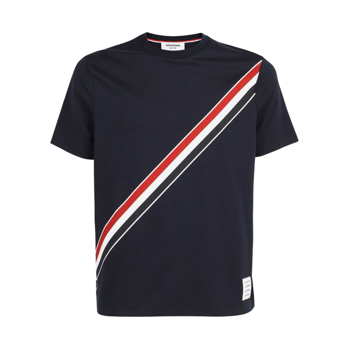 톰브라운 다이애그널 스트라이프 숏슬리브 티셔츠 네이비