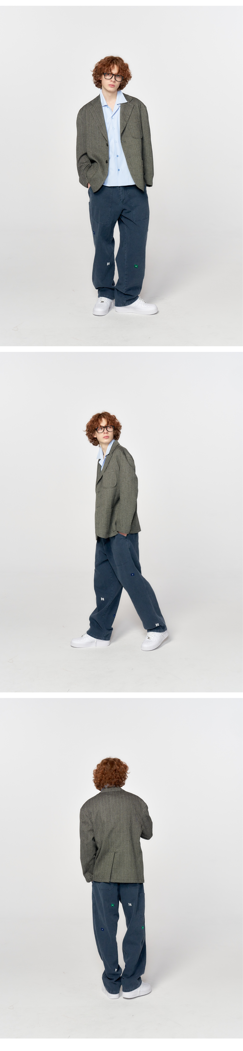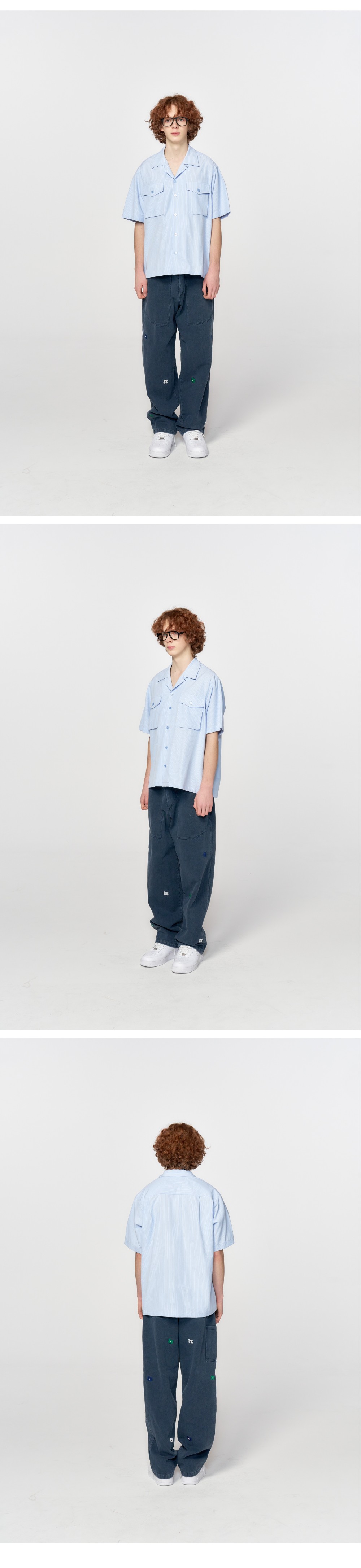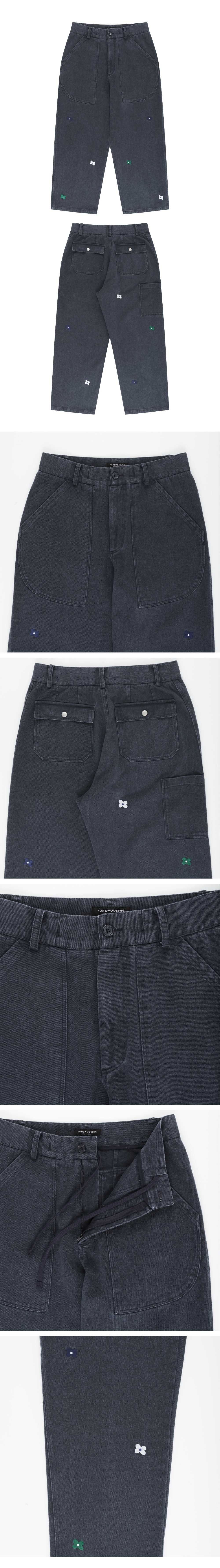 홍우성 엠브로더리 플라워 워시드 퍼티그 팬츠 네이비