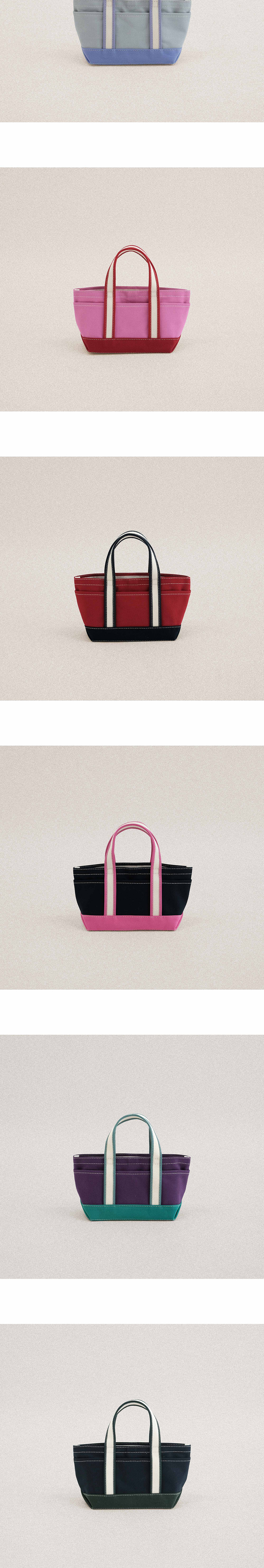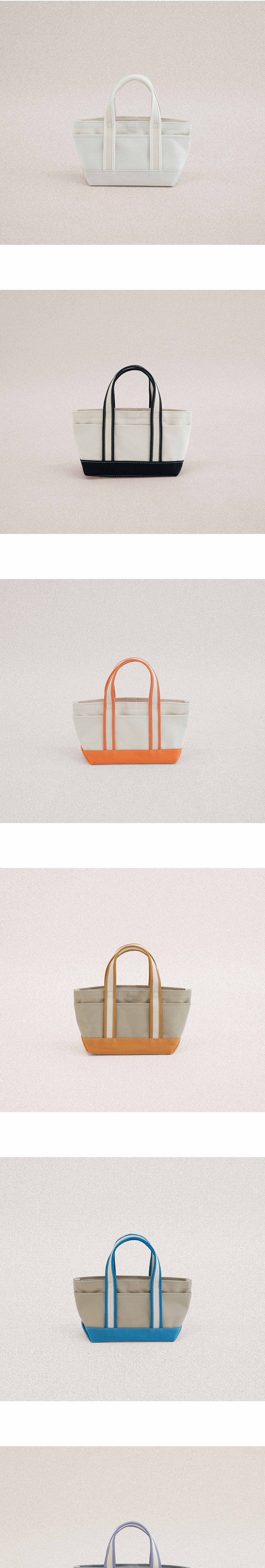 컬러풀한 배색이 돋보이는 보트 형태의 캔버스 미니 토트백입니다. PU 코팅 처리된 원단의 뒷면으로 우수한 방수성과 내구성을 갖췄습니다. 작지만 보트형 디자인으로 넉넉한 수납력을 제공하며, 가벼운 무게감으로 간편한 외출이나 가벼운 옷차림에 포인트 아이템이 되어줍니다. w 280 x h 145 x d 80 mm / 170g - 구터만 마라(Gutermann Mara) 독일제 봉재실 사용 - PU코팅된 캔버스 원단 - 바이어스로 포인트를 준 스트랩 디테일 - 외부 포켓1 내부포켓3 - Sungrip 스냅