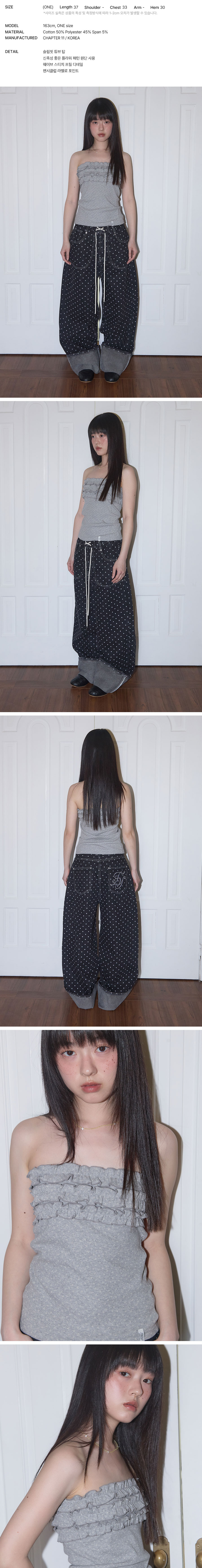 팬시클럽 플라워 프릴 튜브 탑 그레이