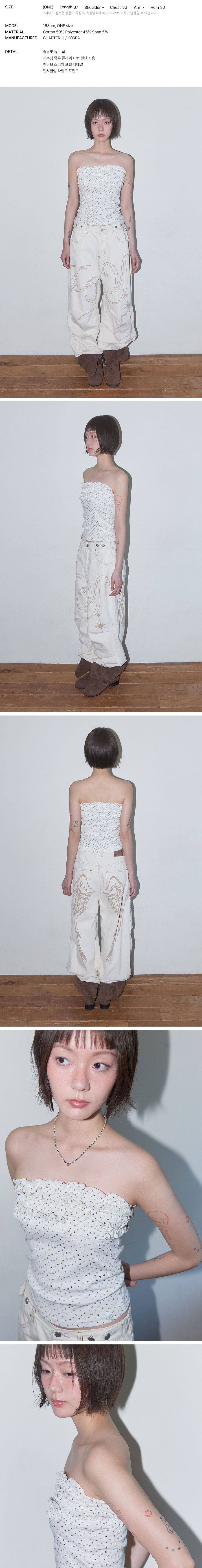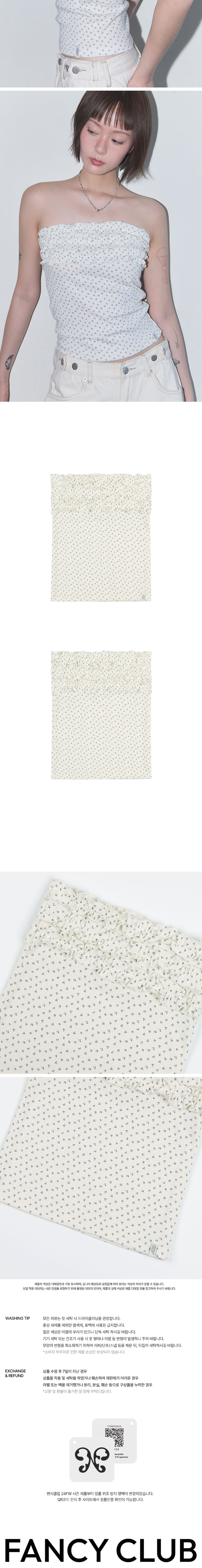 팬시클럽 플라워 프릴 튜브 탑 화이트