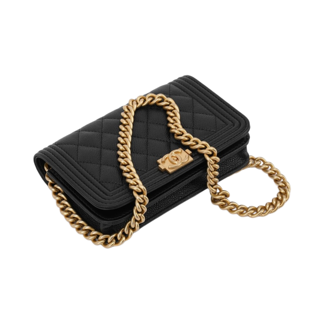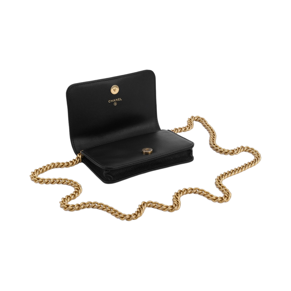 샤넬 보이 샤넬 체인 미니백 그레인드 카프스킨 & 골드 메탈 블랙