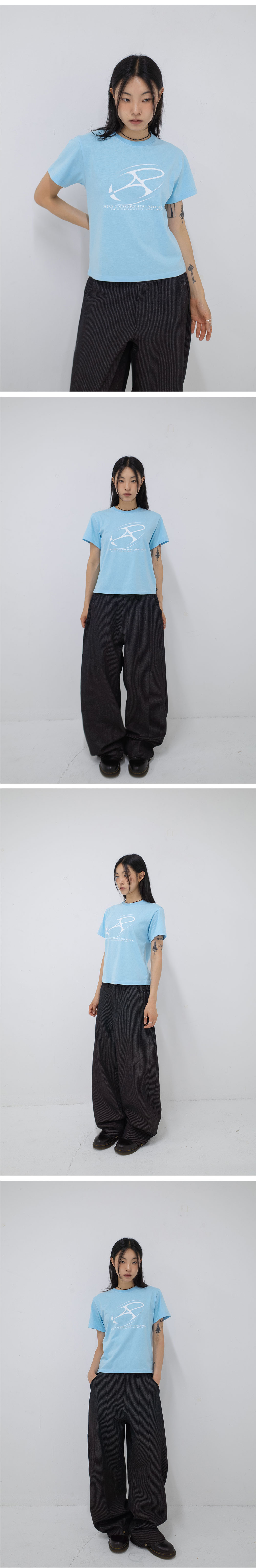비피투디스오더 빅 그래픽 로고 크롭 티 블루
