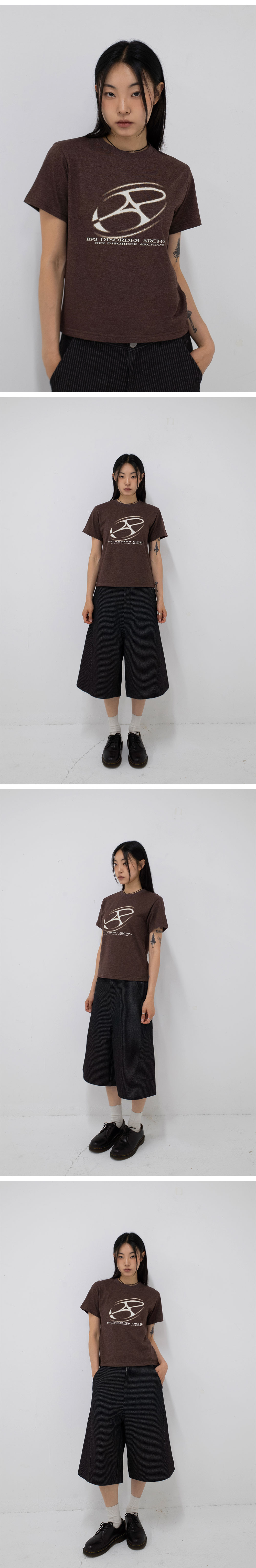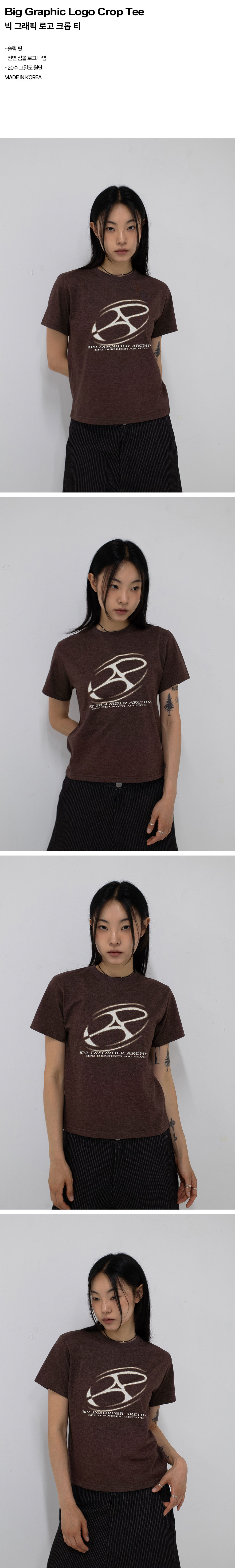 비피투디스오더 빅 그래픽 로고 크롭 티 브라운