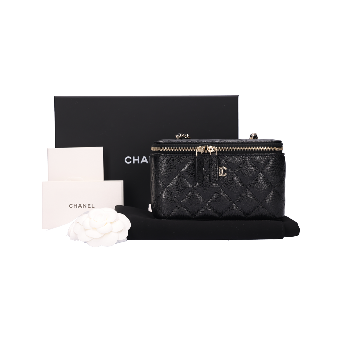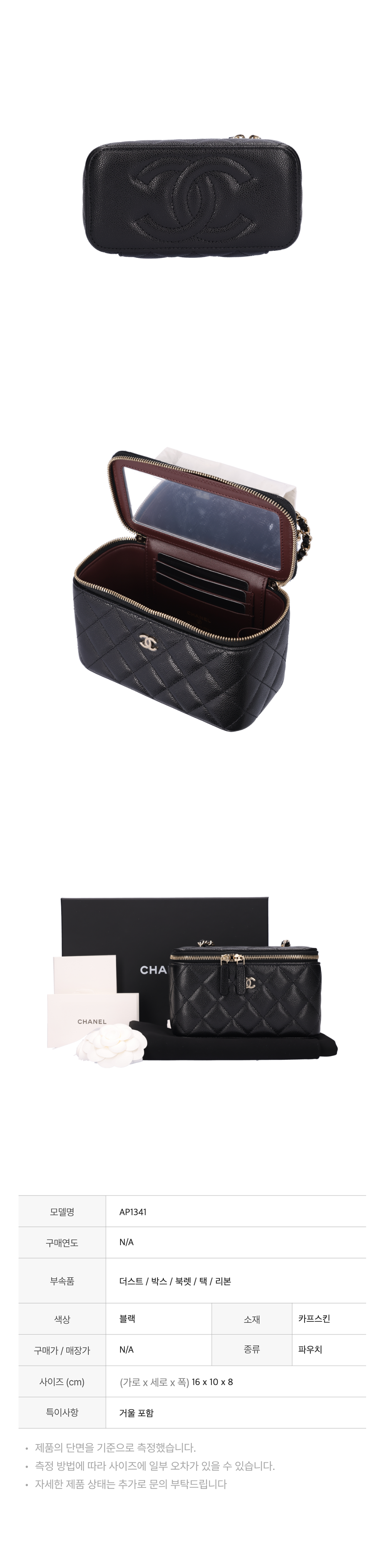 샤넬 AP1341 클래식 스몰 체인 베니티 코스메틱 케이스 그레인드 카프스킨 블랙 금장