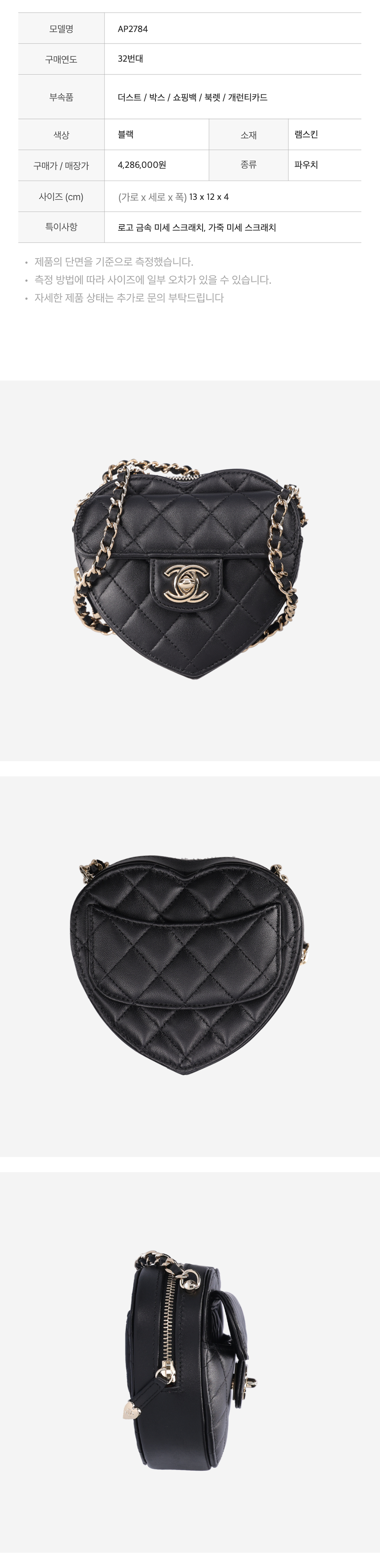 샤넬 AP2784 하트 클러치백 램스킨 블랙 금장