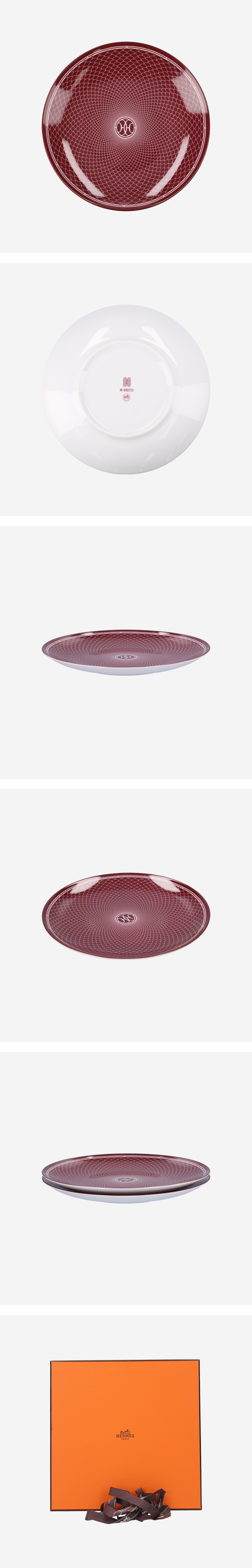 에르메스 P041107P H 데코 디저트 플레이트 루즈 화이트
