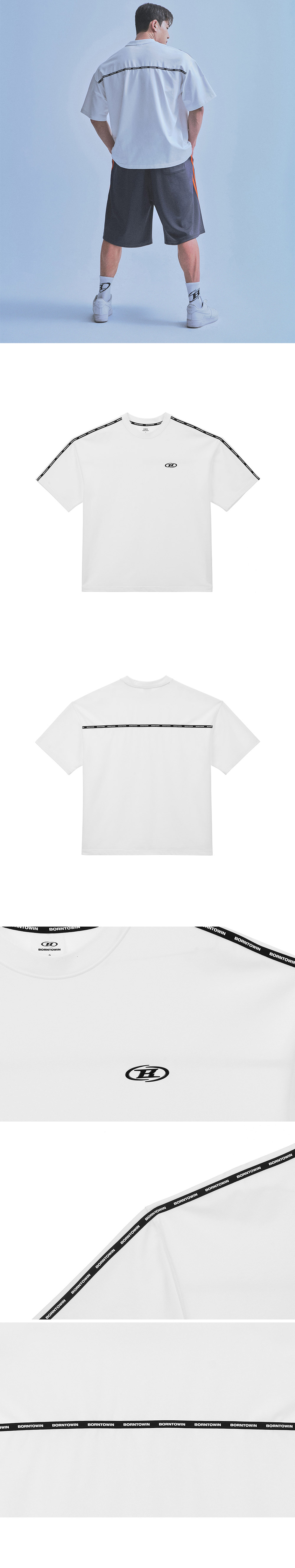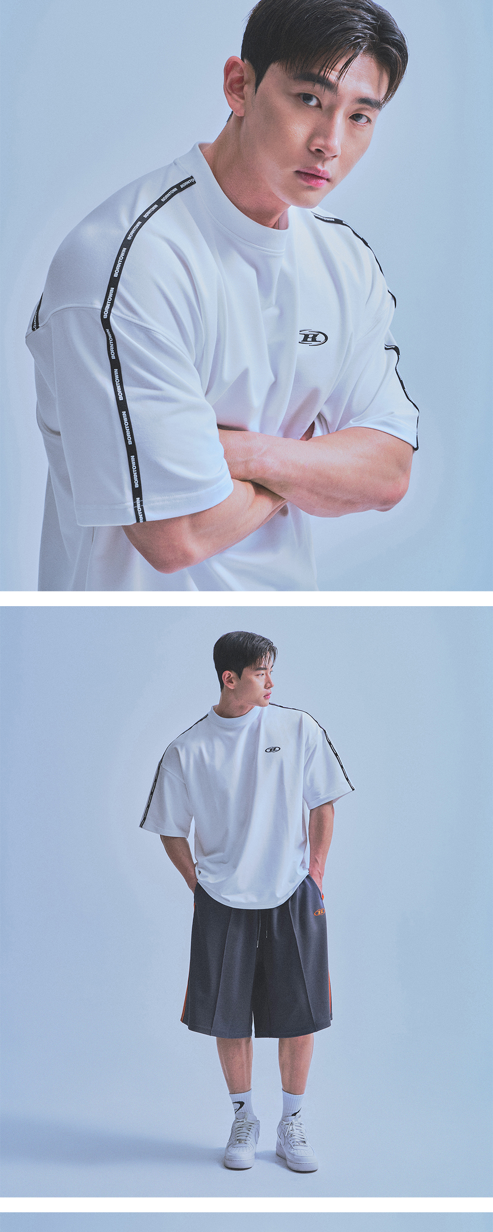 [DETAILS] * 블랙라인 엑스트라핏 티셔츠 - 코튼모달 혼방 에어리스판 - 로고 레터링 테이핑 포인트 - B 로고 포인트 - 잦은 세탁에도 늘어남 없는 어깨 모빌론 테이핑 - 엑스트라 오버핏 Material : Cotton 40%, Modal 27%, Polyester 27%, Polyurethane 6% Fitting : DJ 2 Size, 183cm, 88kg