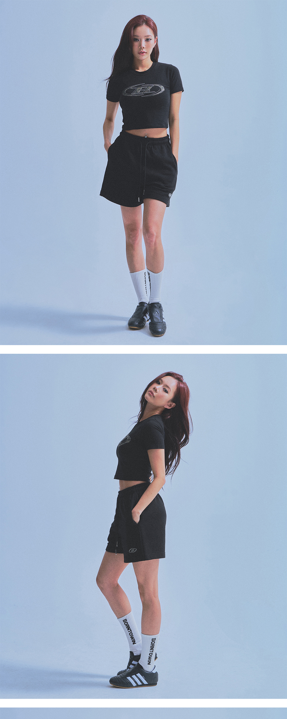[DETAILS] * 크롬 B 숏츠 - COTTON 100% 헤비 테리 - 크롬 B 로고 포인트 - 사이드 포켓 - 허리 조절 가능한 스트링 - 4부 기장 하프 팬츠 Material : Cotton 100% Fitting : NH 1 Size, 162cm, 46kg