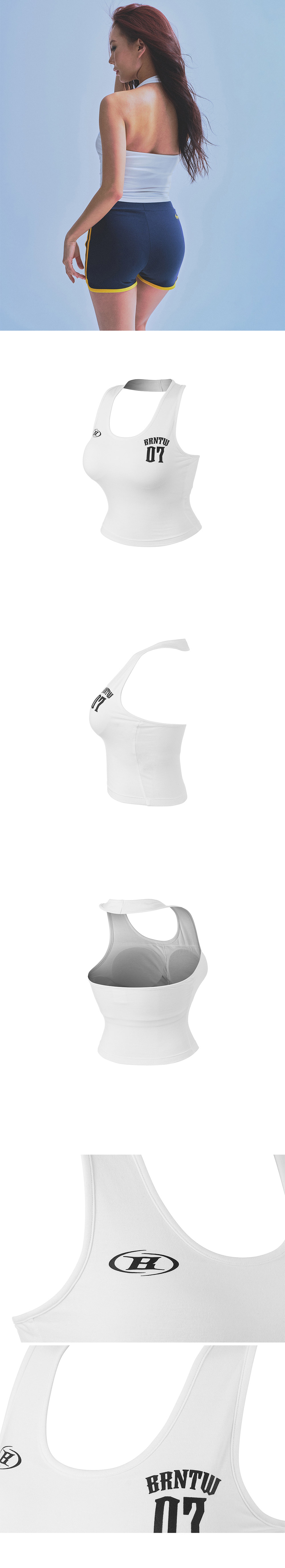 [DETAILS] * 07 홀터넥 슬리브리스 - 코튼,모달 스판 - 탈부착 가능한 브라 패드 - 스포츠 그래픽 로고 포인트 - 슬림핏 Material : Cotton 62%, Modal 33%, Polyurethane 5% Fitting : NH 1 Size, 162cm, 46kg