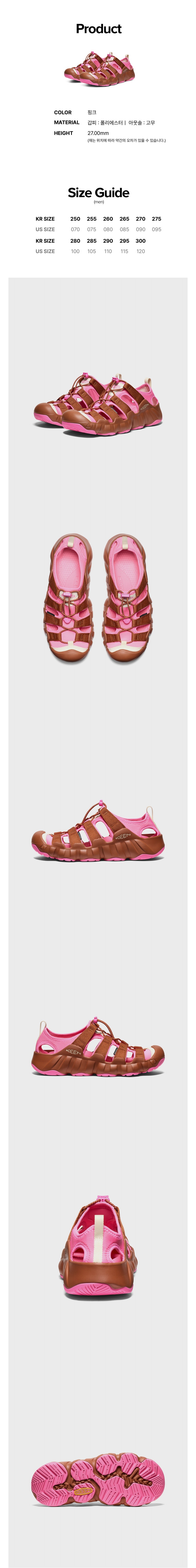 킨 X 하이킹패트롤 하이퍼포트 H2 샌들 남성 샌들 핑크