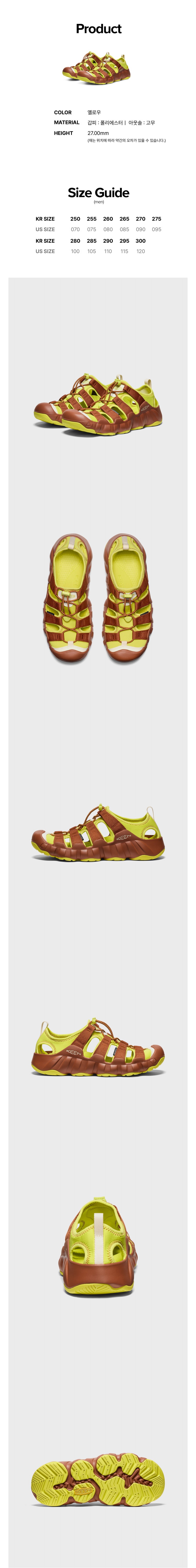 킨 X 하이킹패트롤 하이퍼포트 H2 샌들 남성 샌들 노랑