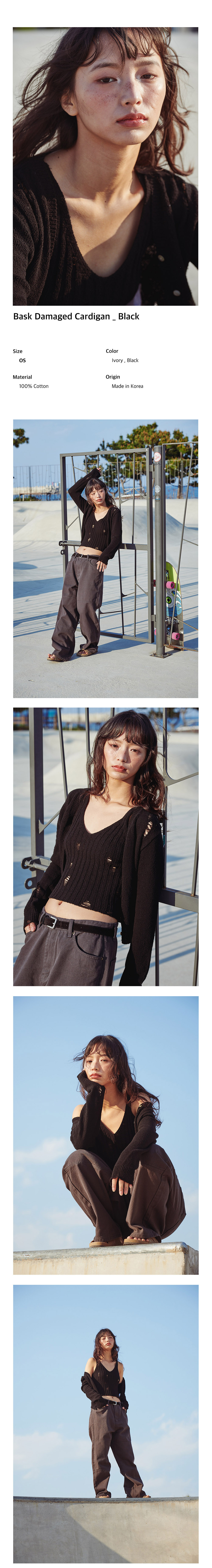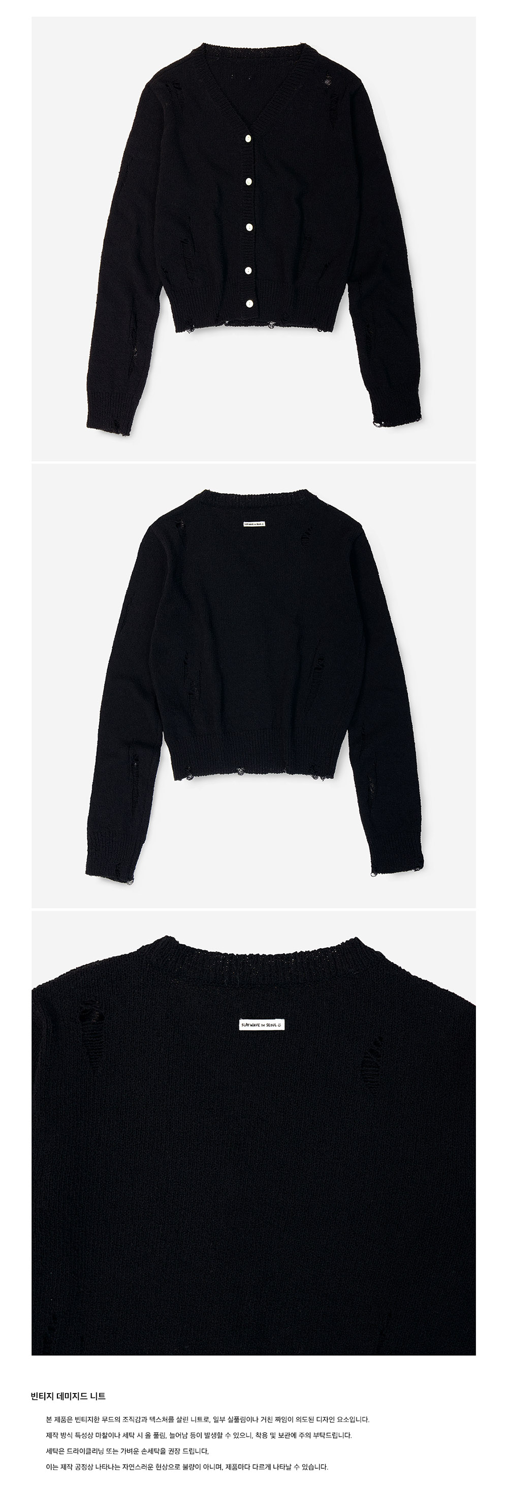 플랫웨이브 인 서울 바스크 데미지드 가디건 블랙