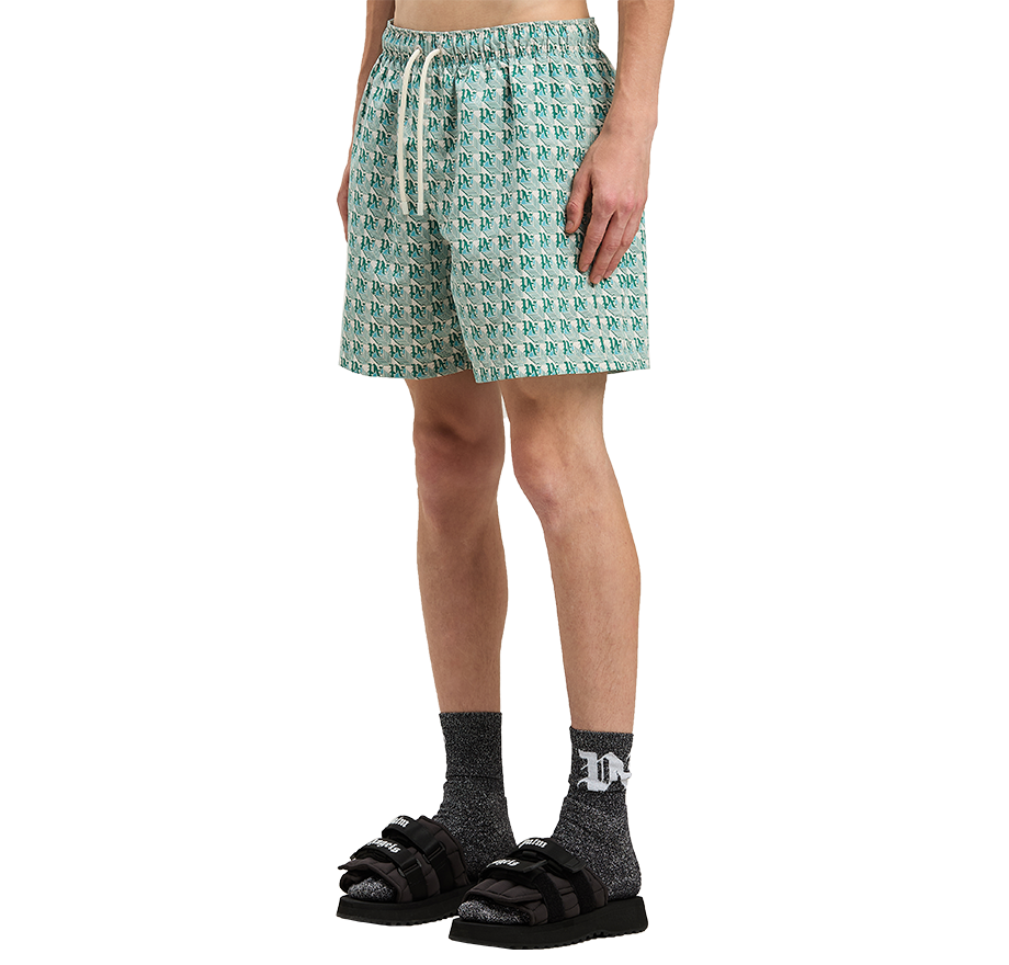Palm Angels Pa Diamonds Swimshorts Green - Ivory