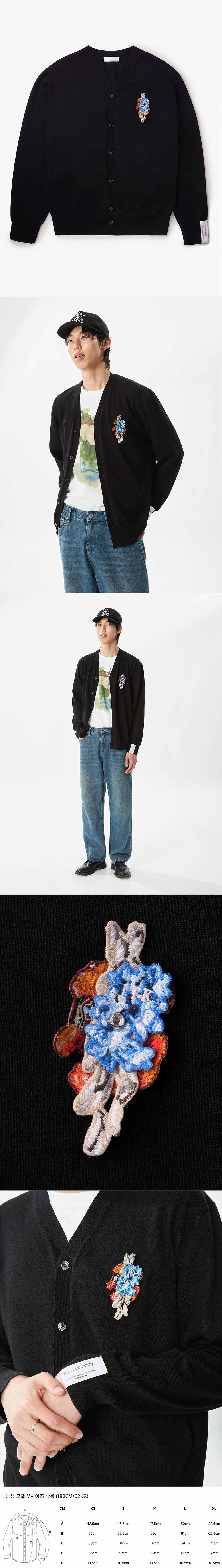 3개의 키치한 자수를 레이어링하여 비즈 리벳으로 부착한 디자인이 특징인 여름용 가디건. 비스코스 소재로 가볍게 착용 가능합니다.