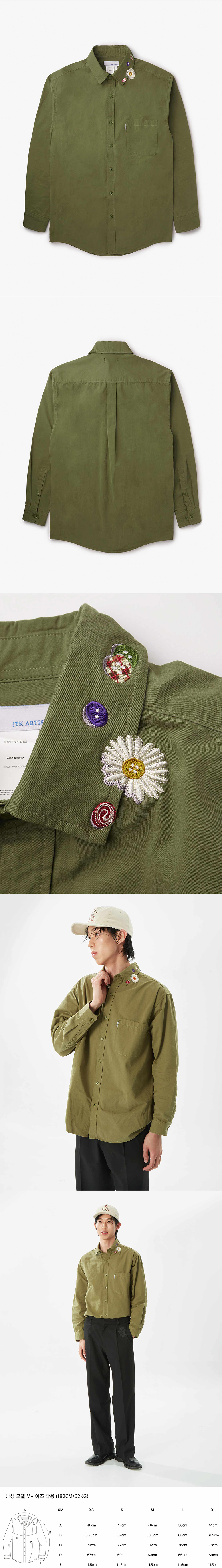 준태킴 엠보더리 버튼 셔츠 올리브
