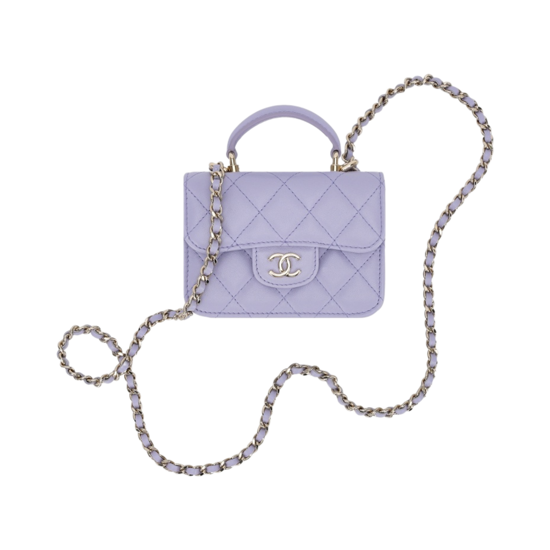 샤넬 체인 플랩 동전 지갑 램스킨 & 골드 메탈 라이트 퍼플