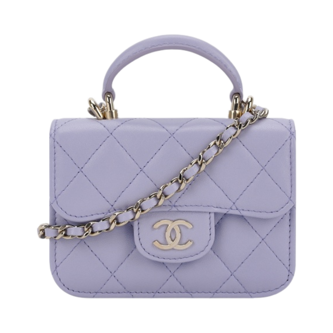 Chanel Flap Coin Purse with Chain Lambskin & Gold Light Purple