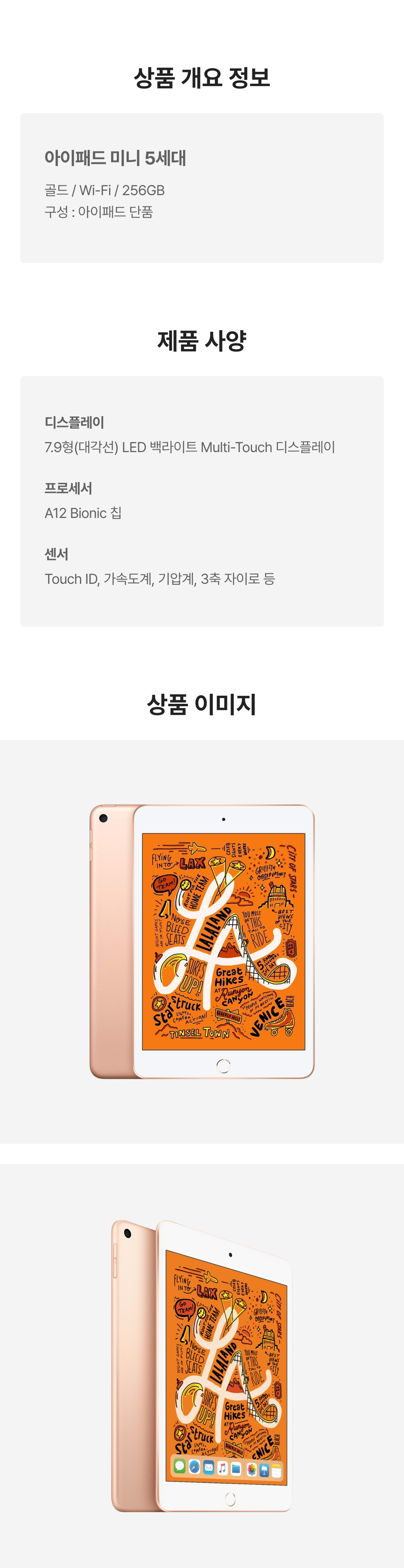 [B등급] 리퍼비시 아이패드 미니 5세대 wifi A12 Bionic 256기가 골드