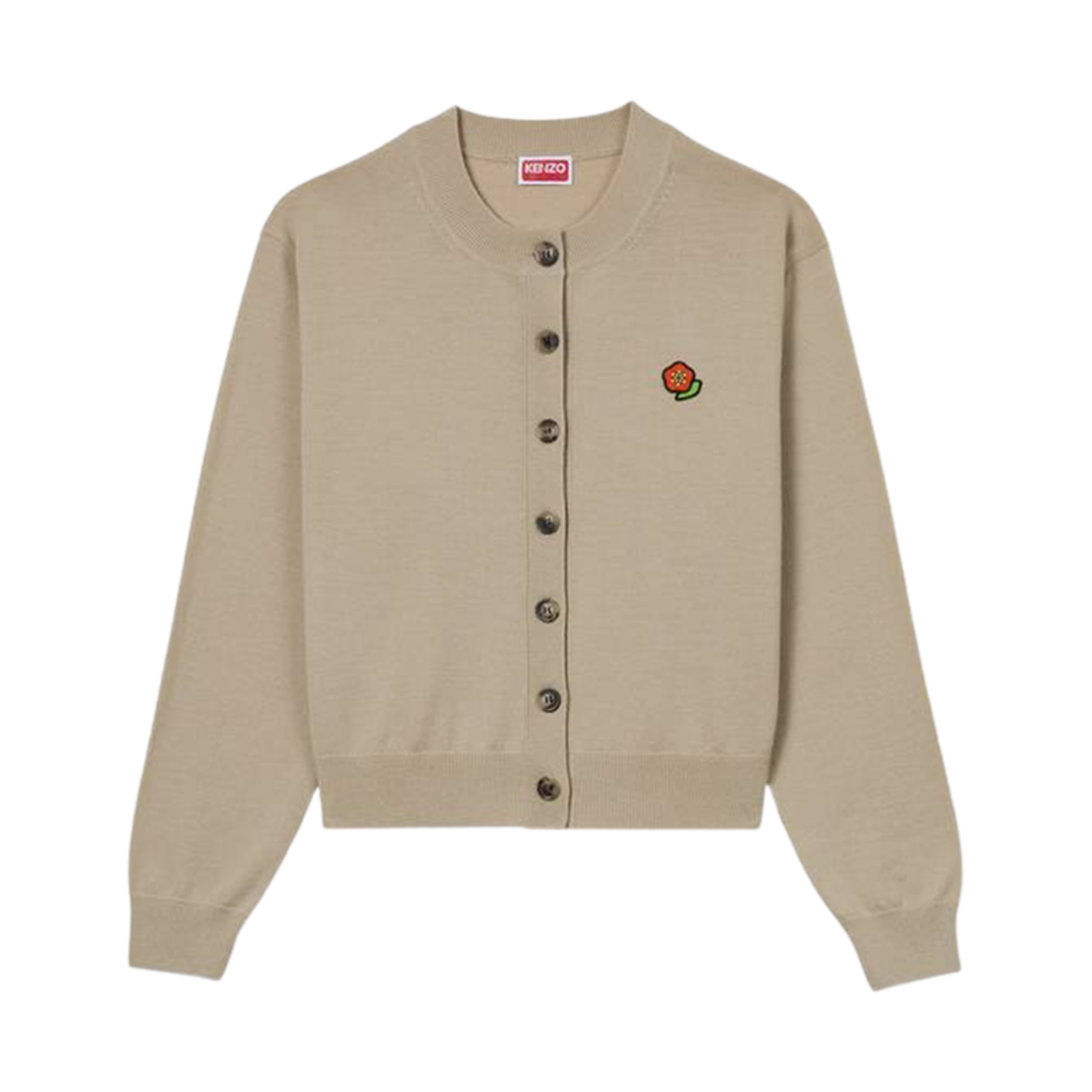 (W) 겐조 팝 자수 크루넥 메리노 울 가디건 베이지