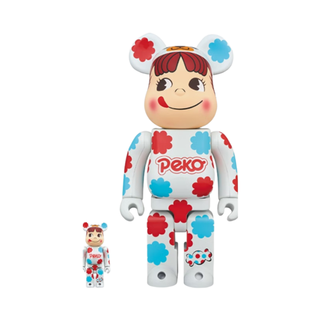 Bearbrick Kigurumi Peko-chan Fujiya Milky White Plating 100% & 400% Set