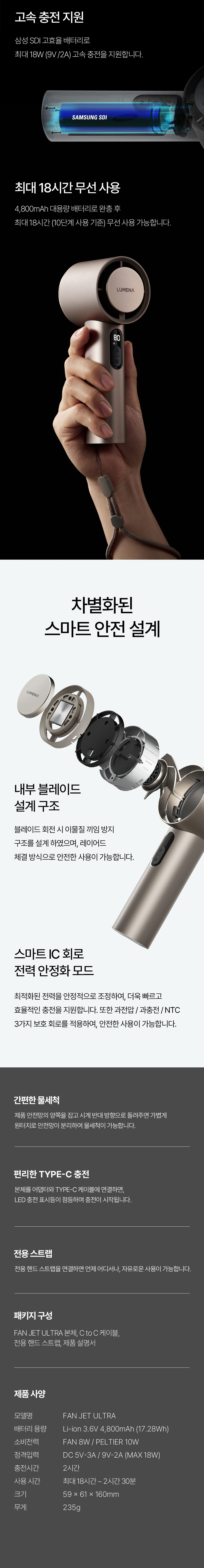 루메나 FAN JET ULTRA 휴대용 무선 냉각선풍기 루나 화이트