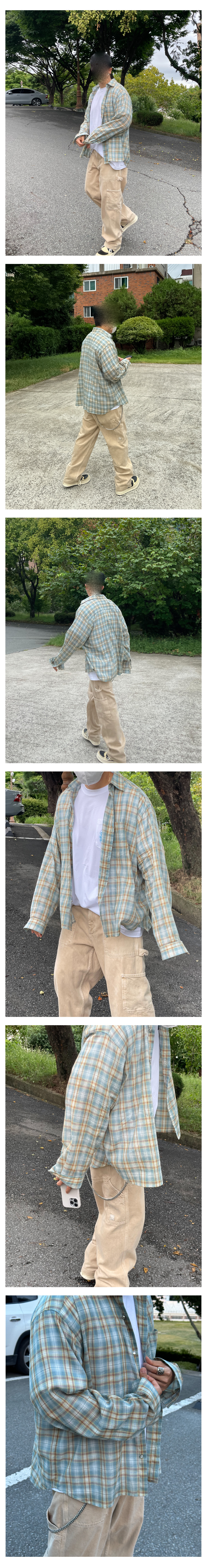 인센스 라지 핏 펄 블루 플란넬 셔츠 스카이블루