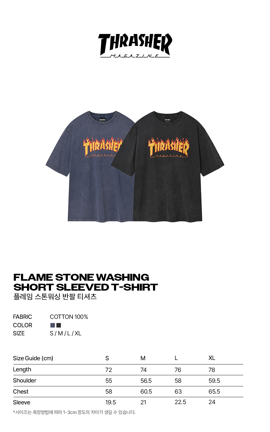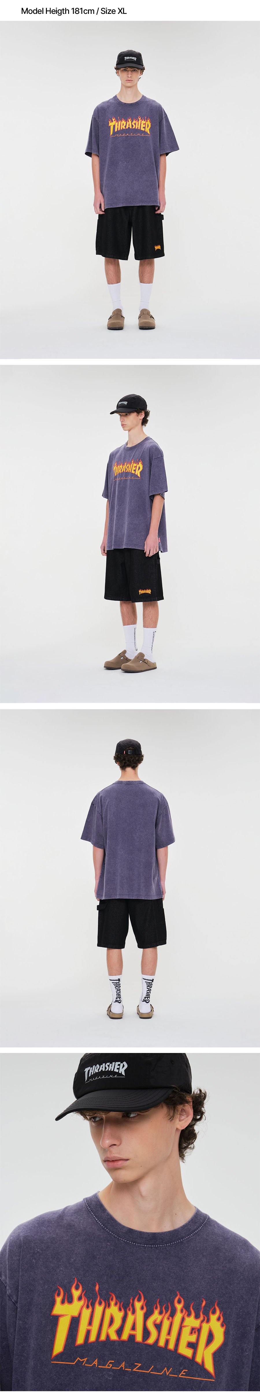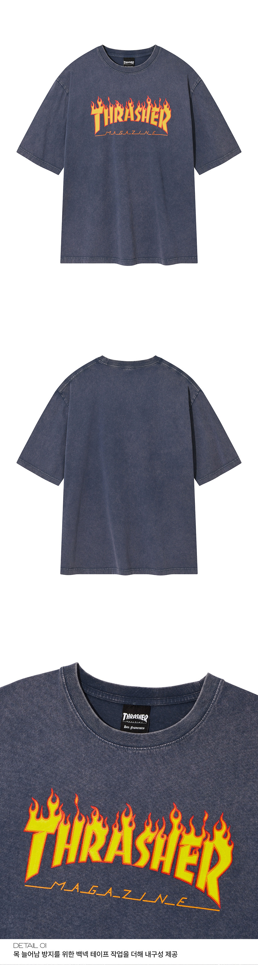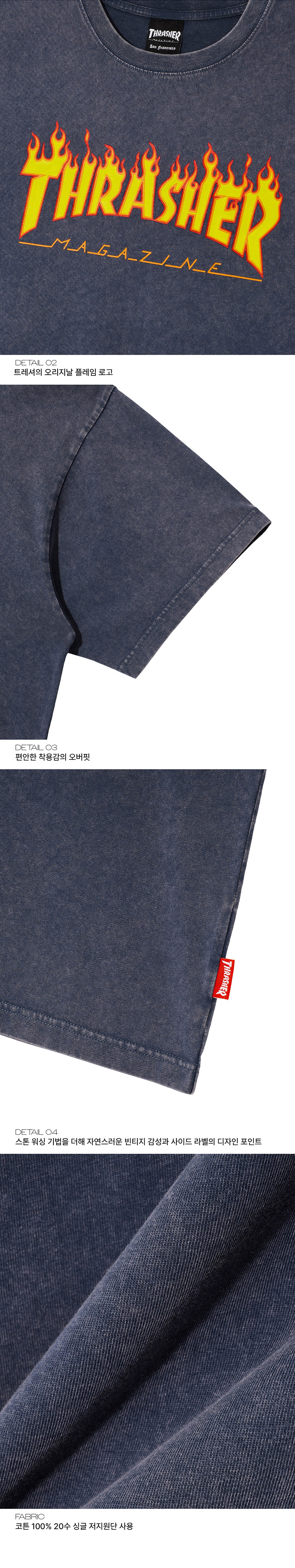 트레셔 플레임 스톤워싱 반팔 티셔츠 블루