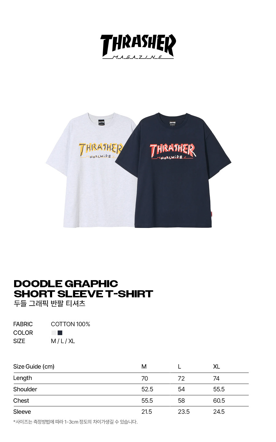트레셔 두들 그래픽 반팔 티셔츠 네이비