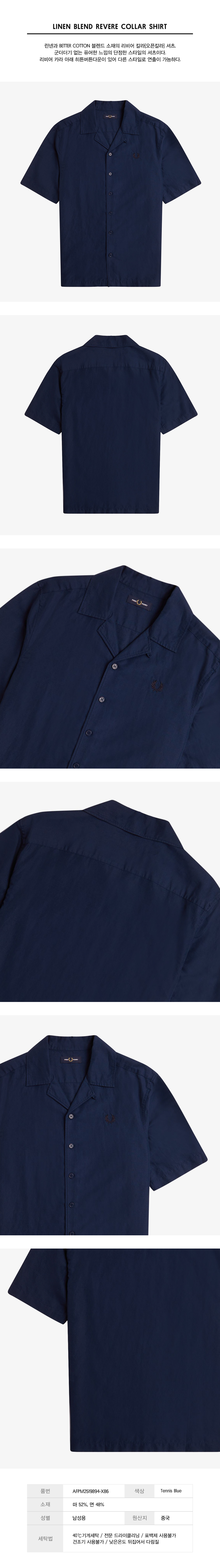 프레드페리 린넨 블렌드 리비어 칼라 셔츠 테니스블루