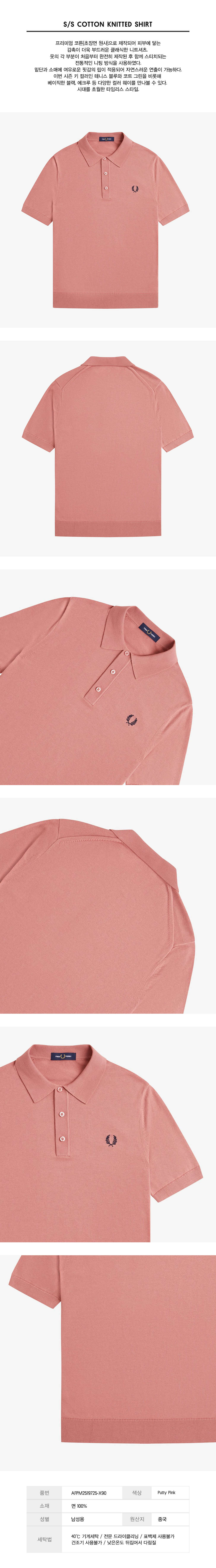 프레드페리 숏 슬리브 코튼 니트 셔츠 퍼티핑크