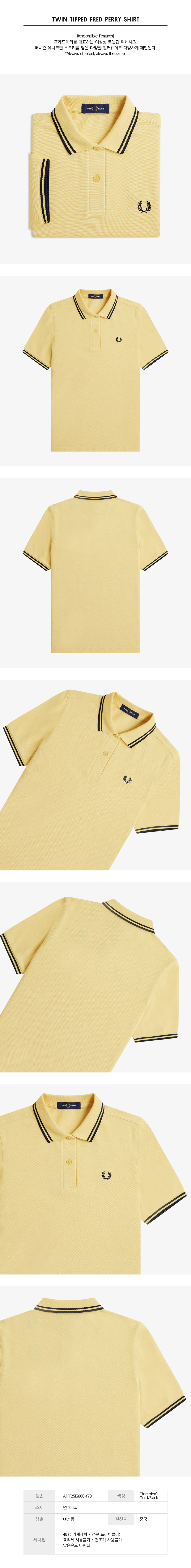 프레드페리 우먼스 G3600 트윈 팁 프레드페리 셔츠 챔피언스골드/블랙