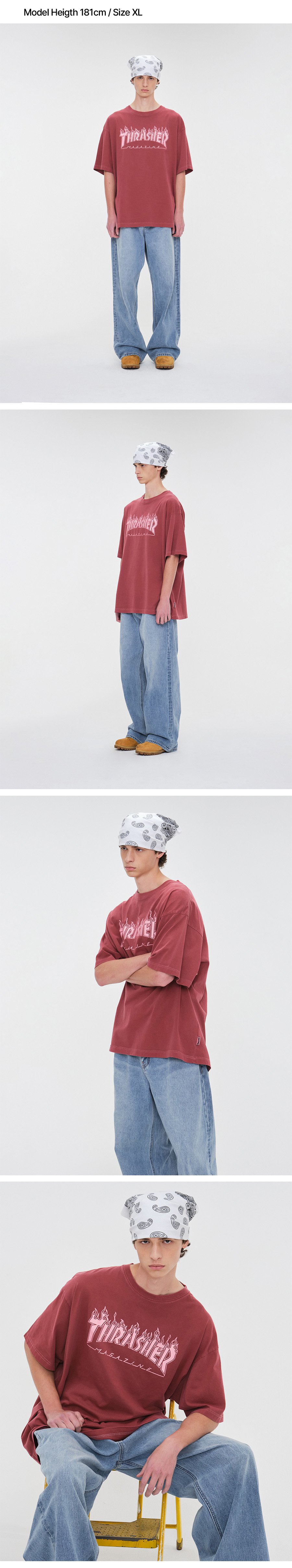 THRASHER Flame Pigment Dying Short Sleeve T-Shirt Burgundy