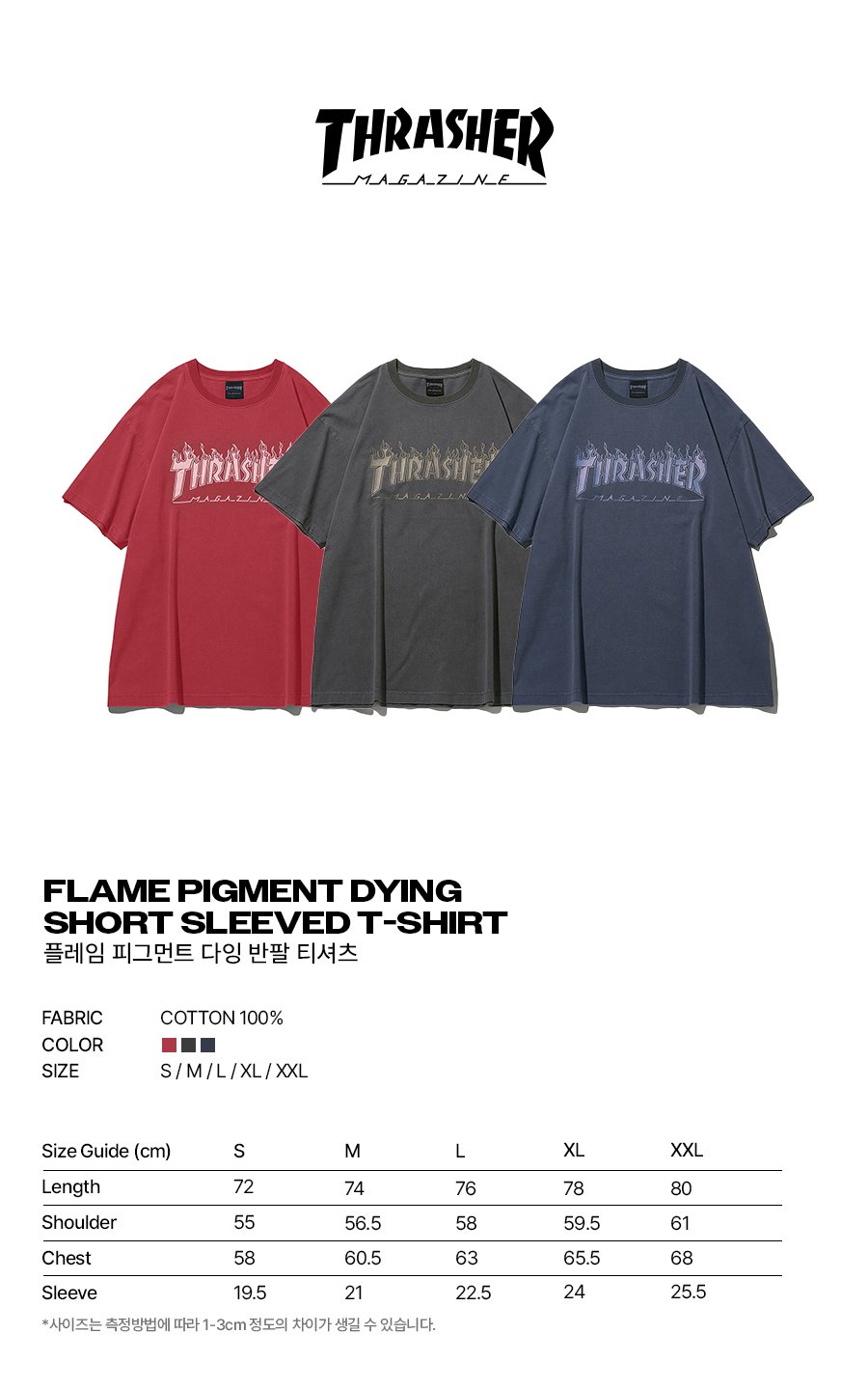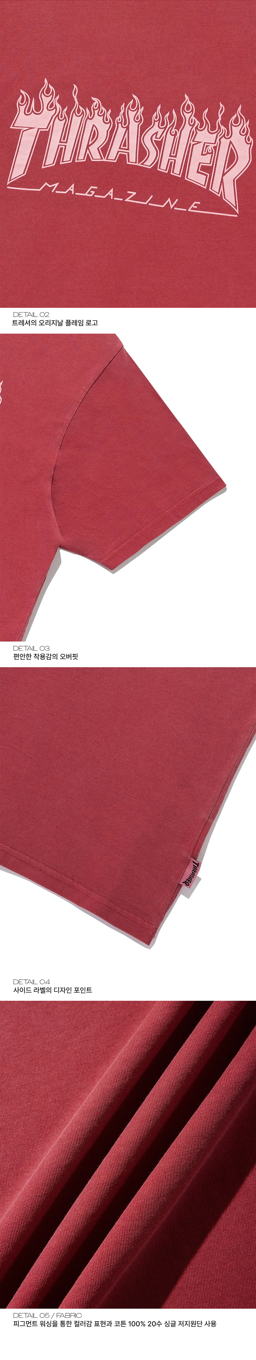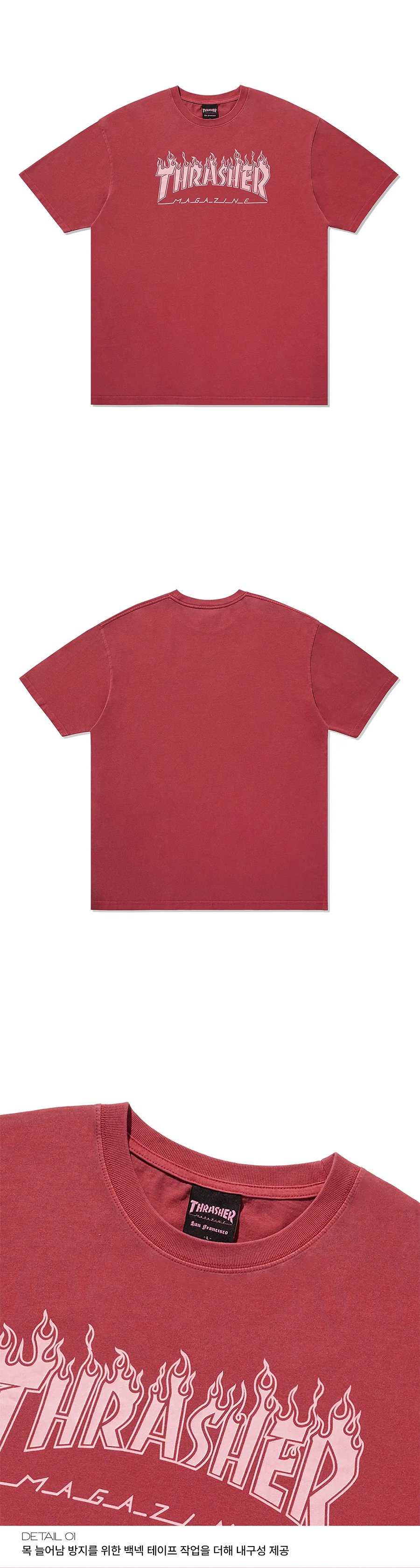 트레셔 플레임 피그먼트 다잉 반팔 티셔츠 버건디