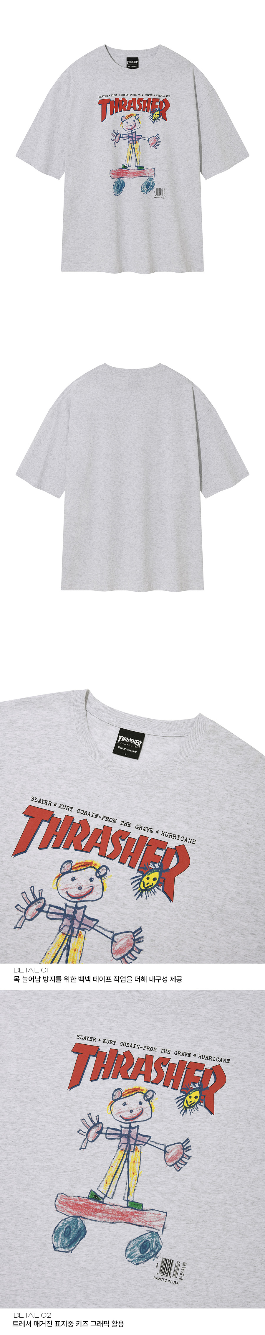 트레셔 키즈 스케치 반팔 티셔츠 라이트 그레이