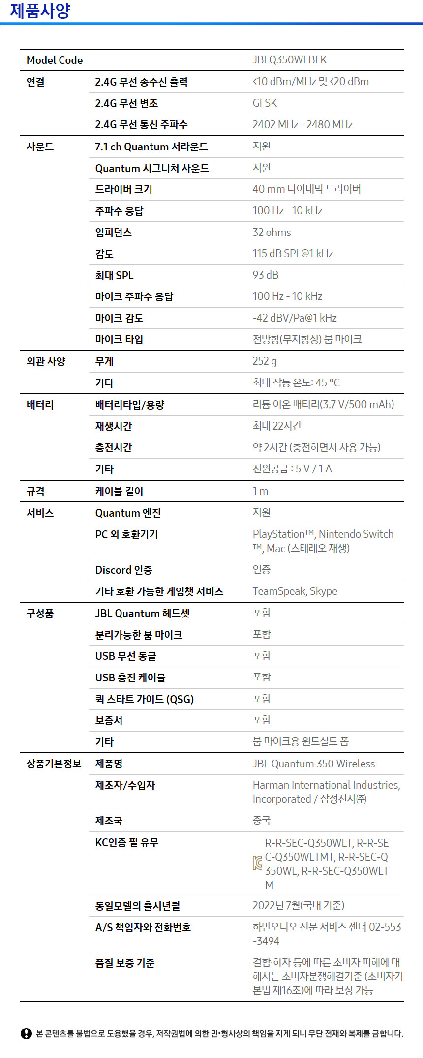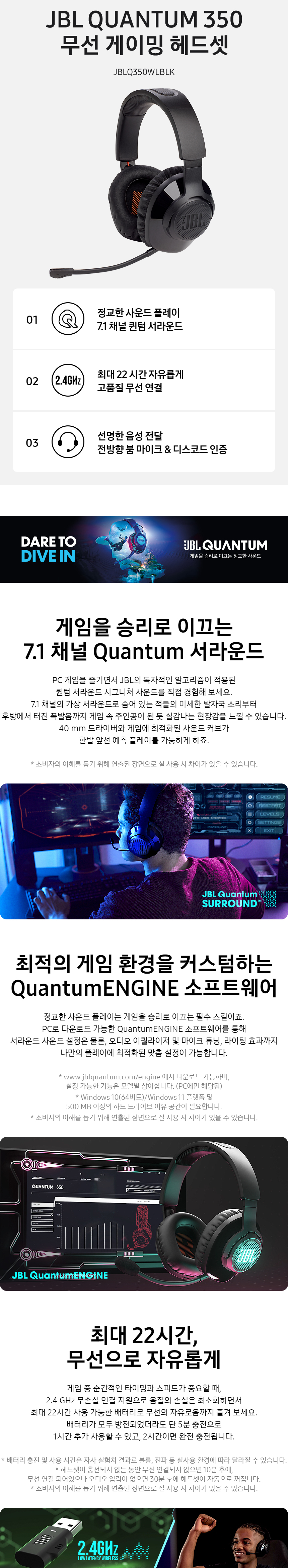제이비엘 QUANTUM 350 퀀텀 무선 게이밍 헤드셋 블랙