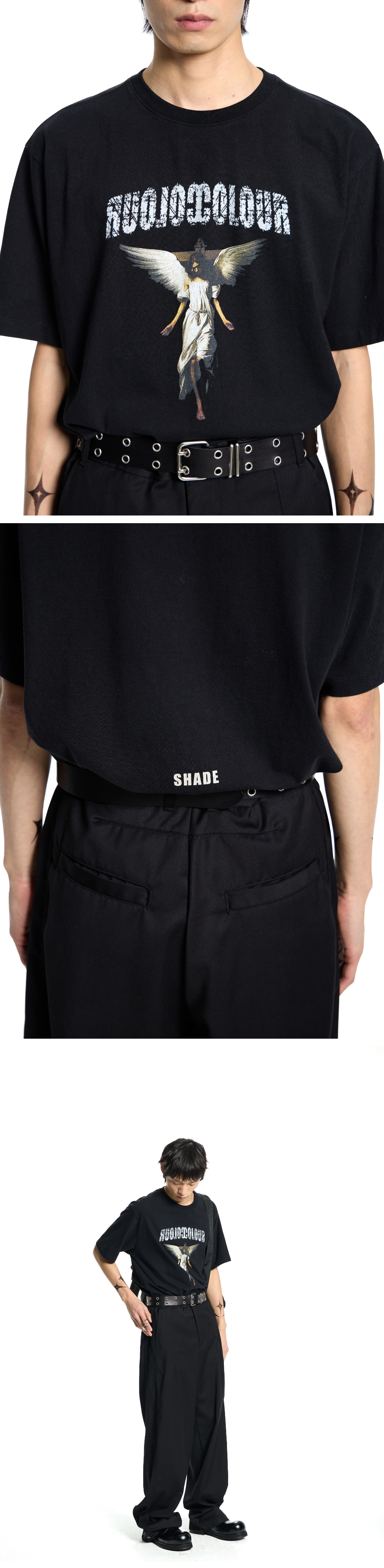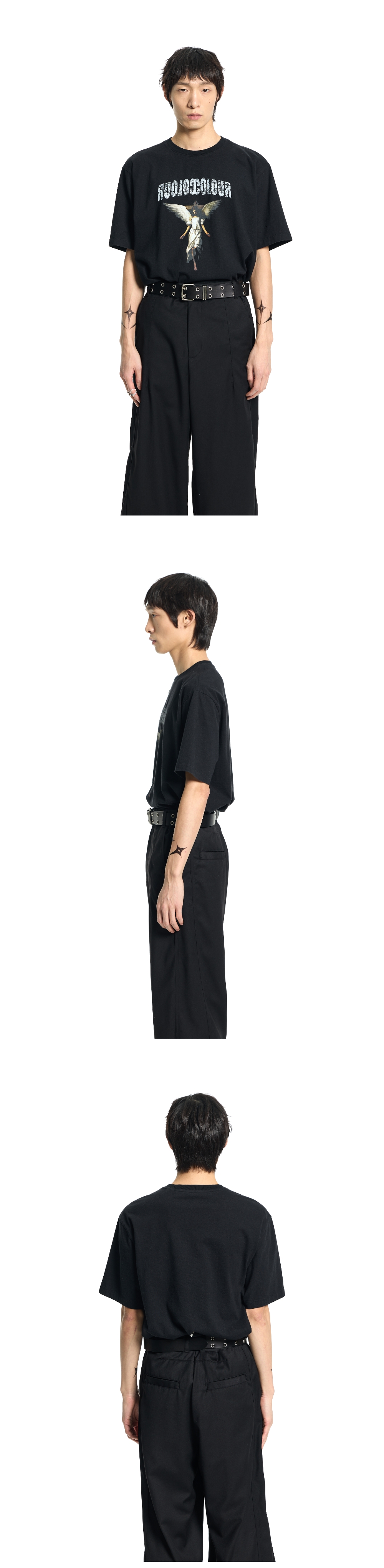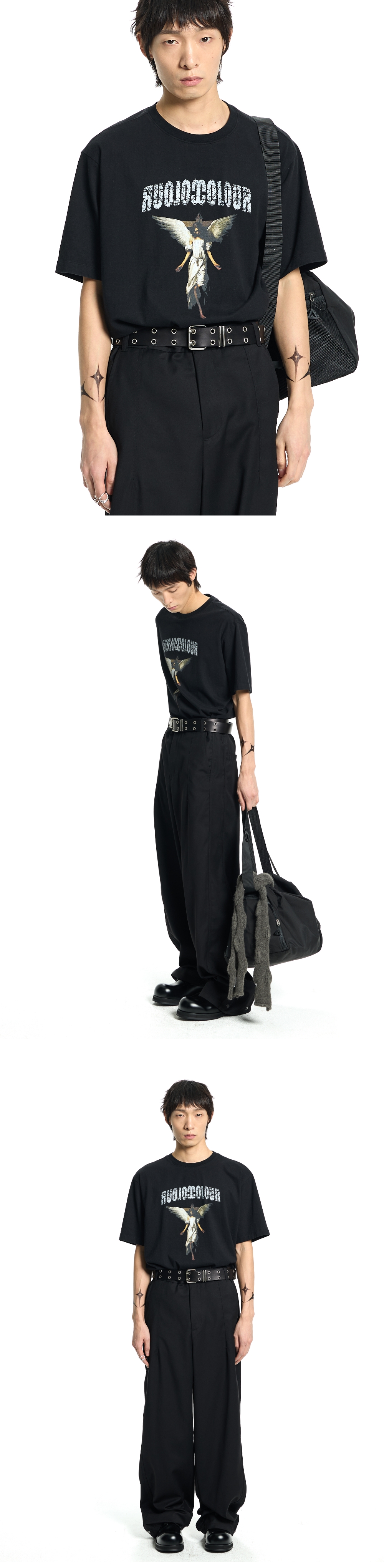 본바트 엔젤 그래픽 워시드 숏 슬리브 블랙