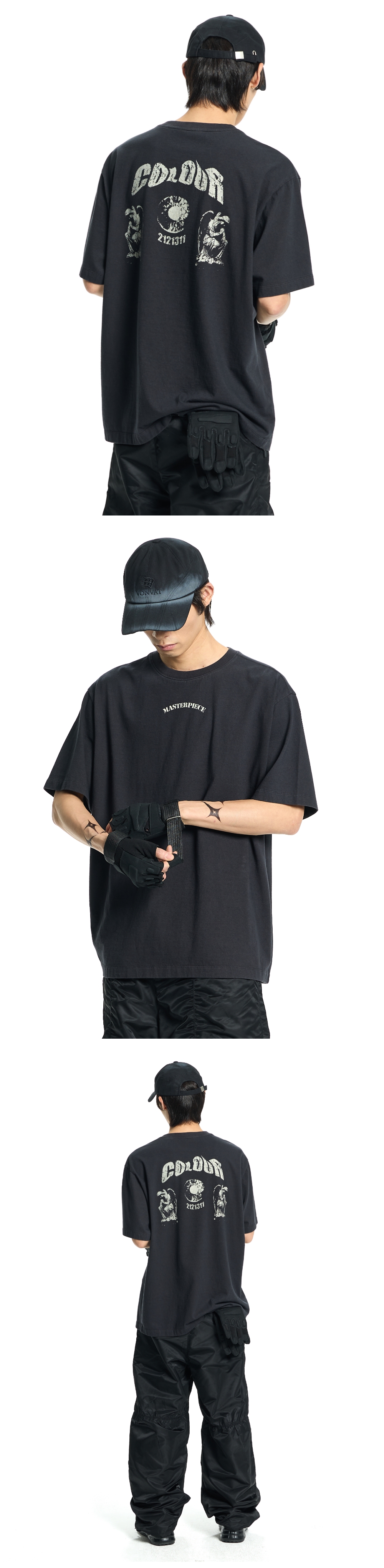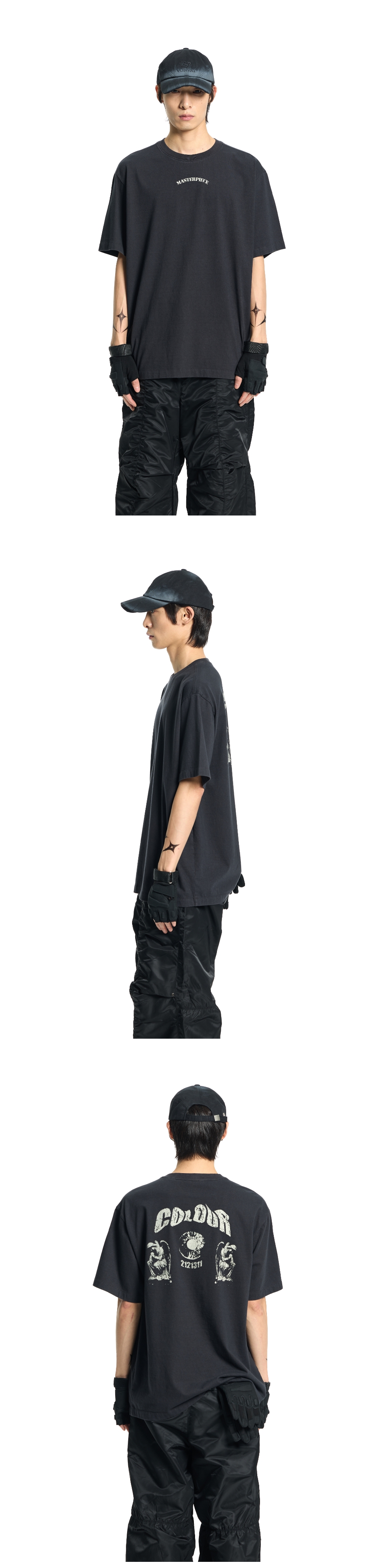 빈티지한 톤온톤 그래픽의 세미 오버핏 반팔 티셔츠입니다. 메인원단은 바이오 워싱을 여러차례 돌려서 부담스럽지않은 빈티지 느낌을 구현하였습니다. 원단에 스며든듯한 기법의 안료 프린팅으로 빈티지한 그래픽을 표현하였고 앞판에는 시즌 그래픽 테마 중 하나를 나타내는 단어, 그리고 뒷판에는 그에 어울리는 그래픽을 밸런스 있게 배치하였습니다. 핏은 호불호가 없는 세미 오버핏이고 적당한 두께감의 20수 싱글 원단으로 활용도가 높습니다. Shell : Cotton 100% 세미 오버핏 1(S) : 총장 69, 어깨단면 49.5, 가슴단면 58.5, 소매길이 22.5, 밑단단면 55 2(M) : 총장 71, 어깨단면 51.5, 가슴단면 61, 소매길이 23.5, 밑단단면 57.5 3(L) : 총장 73, 어깨단면 53.5, 가슴단면 63.5, 소매길이 24.5, 밑단단면 60