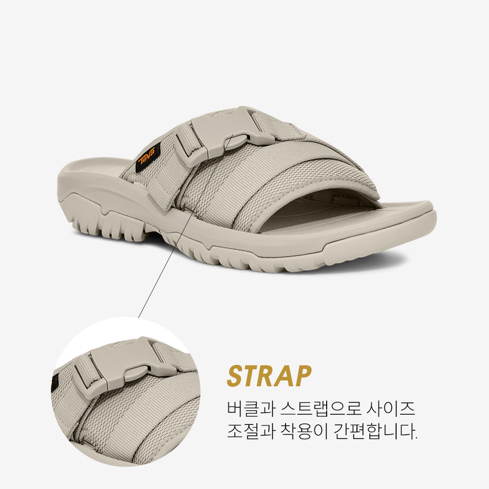 크로스 스트랩으로 디테일을 더한 허리케인 샌들의 슬라이드 버전입니다. 접지력 강한 러버 아웃솔을 더해 다른 슬라이드에서 느낄 수 없는 안정적인 착화감을 선사합니다. 조절 가능한 버클과 스트랩으로 발에 알맞게 착용 가능해 긴 산책에도 발이 편안합니다.