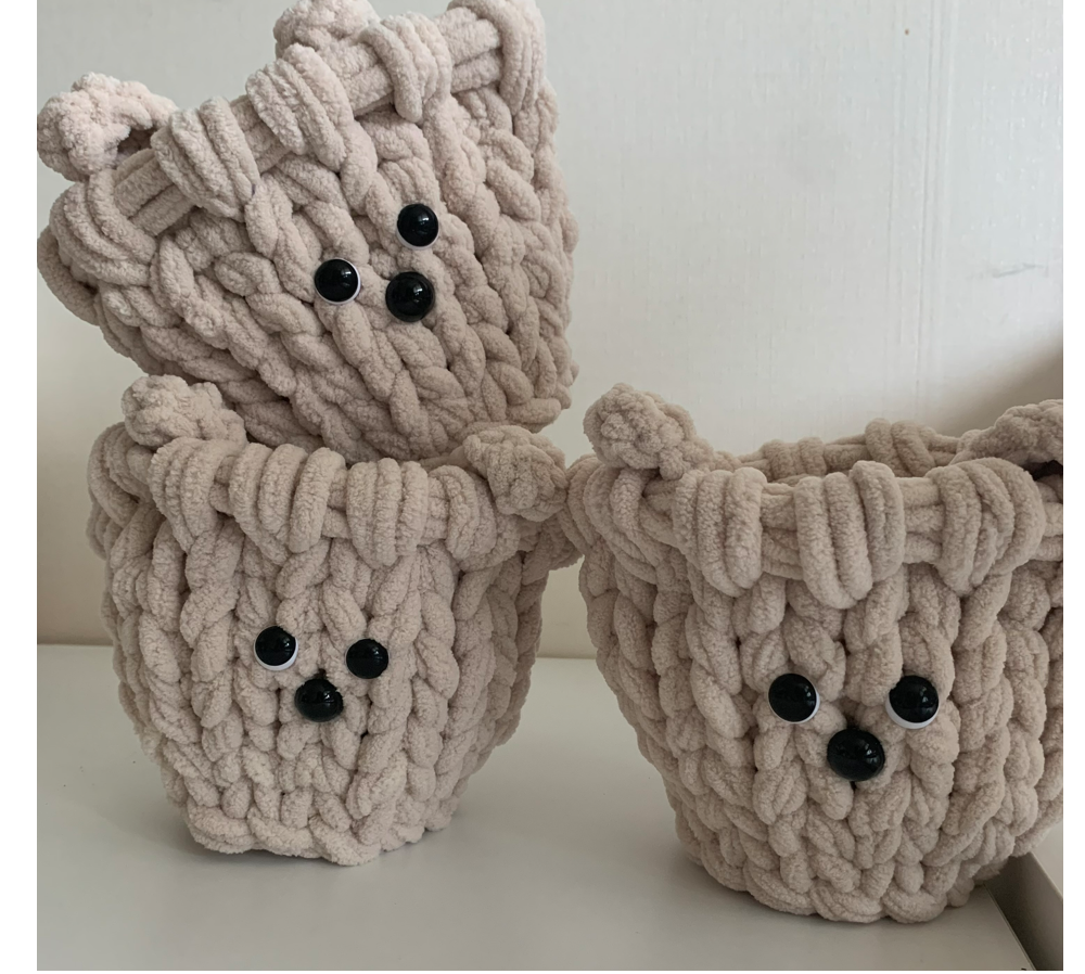 내방에도 귀여운 강쥐있다! 일상생활에서 쉽게 사용 할 수 있는 제품인 손뜨개 핸드메이드 제품인 보송보송바구니입니다. 귀여운 강아지를 모티브로 하여 제작된 베이지 컬러 애니몰 보송바구니입니다. 콩알 같은 눈과 코가 매력적인 제품입니다. 바구니 뒷 부분에 꼬리와 텍이 달려있습니다. 문구용품을 보관할 수 있는 데스크테리어용, 식물의 화분을 넣어 사용 가능한 팟커버 플랜테리어용으로 대채로운 사용이 가능합니다. 나만의 공간에 포인트를 줄 수 있는 색상으로 다양하게 활용해보세요! 귀여운 선물용으로도 추천드립니다. 밑면도 단단하게 제작되어있습니다. *털실 제품 특성 상 고정력이 떨어질 수 있습니다.