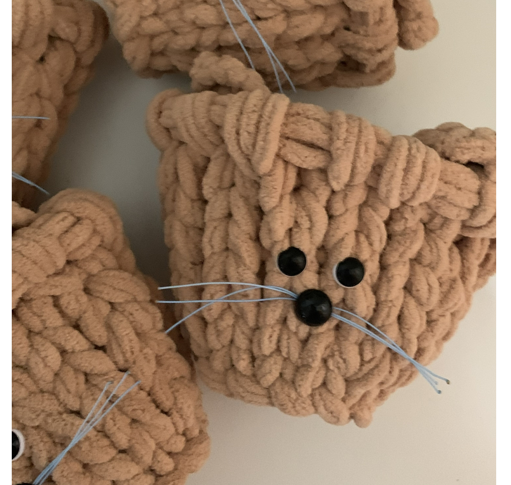 내방에도 귀여운 고양이 있다 ! 일상생활에서 쉽게 사용 할 수 있는 제품인 손뜨개 핸드메이드 제품인 보송보송바구니입니다. 치즈냥이를 모티브로 하여 제작된 애니몰 보송바구니입니다. 매력적인 눈과 귀여운 파랑색 콧수염이 있는 제품입니다. 바구니 뒷 부분에 꼬리와 텍이 달려있습니다. 문구용품을 보관할 수 있는 데스크테리어용, 식물의 화분을 넣어 사용 가능한 팟커버 플랜테리어용으로 대채로운 사용이 가능합니다. 나만의 공간에 포인트를 줄 수 있는 색상으로 다양하게 활용해보세요! 귀여운 선물용으로도 추천드립니다. *밑면도 단단하게 제작되어있습니다. 털실 제품 특성 상 고정력이 떨어질 수 있습니다.