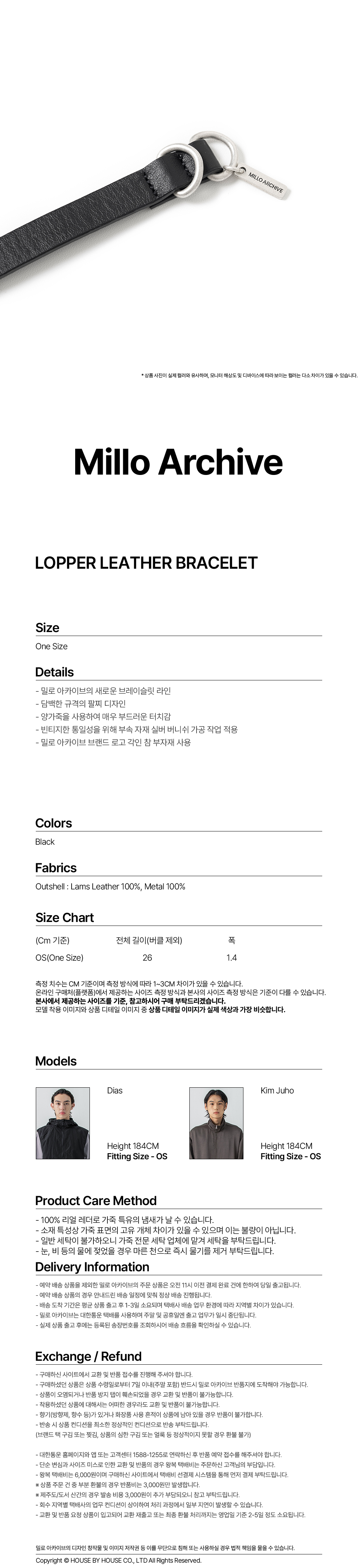 밀로 아카이브 랍퍼 레더 브레이슬릿 블랙
