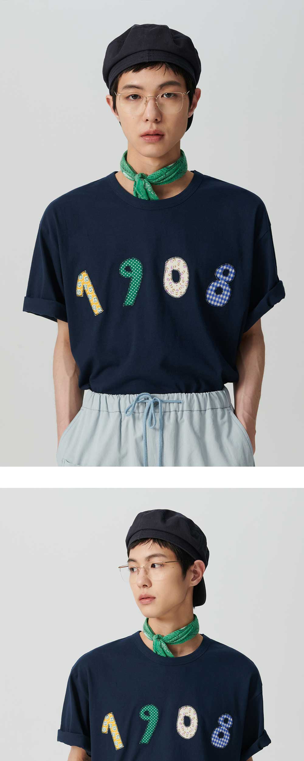 엔 아카이브 핸드 메이드 패치 디테일 16수 반팔 티셔츠 네이비