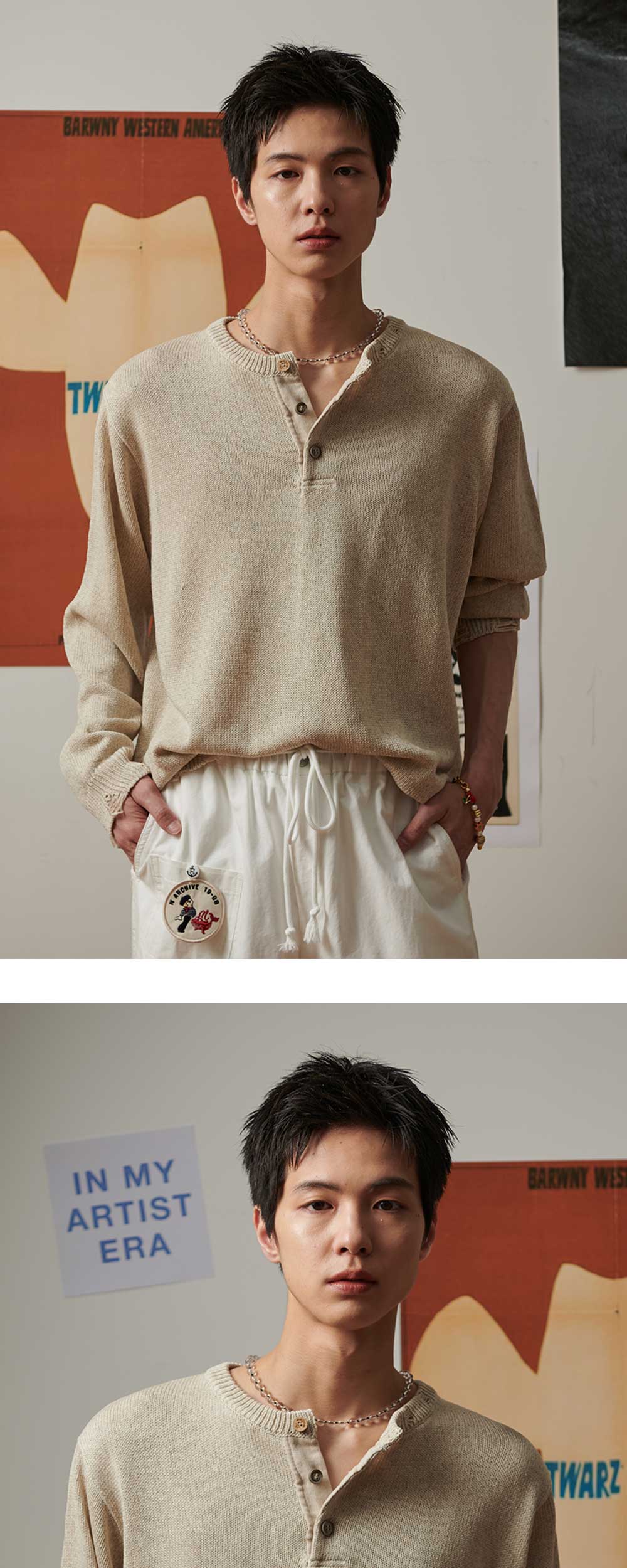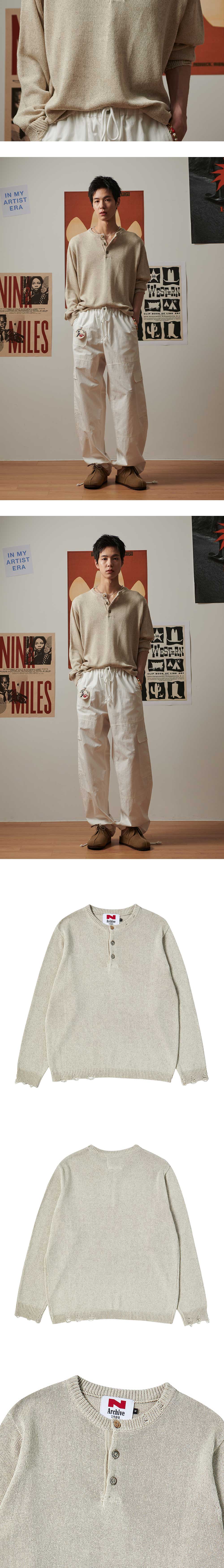 엔 아카이브 린넨 블렌디드 빈티지 가먼트 헨리넥 니트 아이보리
