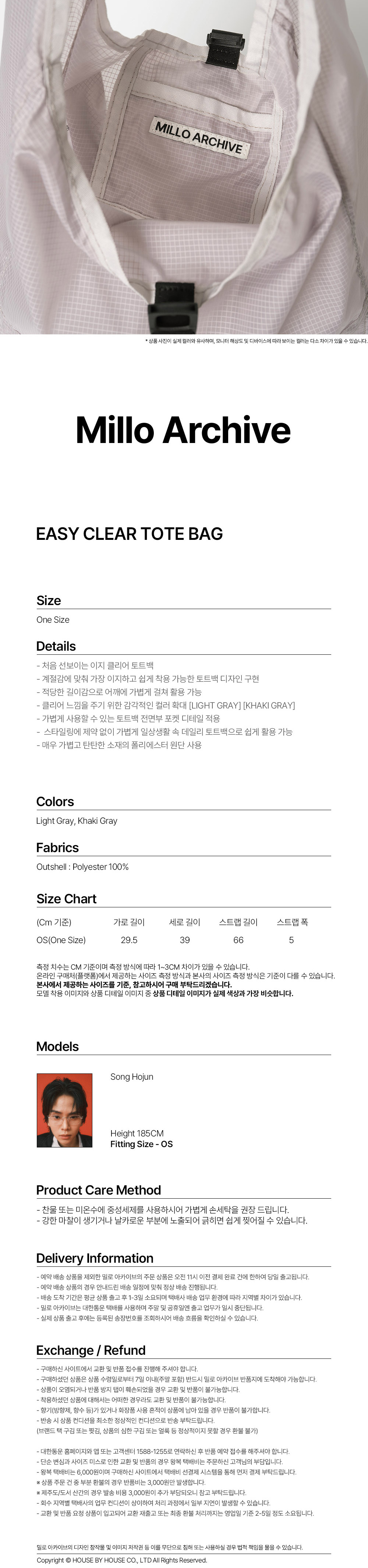 밀로 아카이브 이지 클리어 토트 백 라이트 그레이