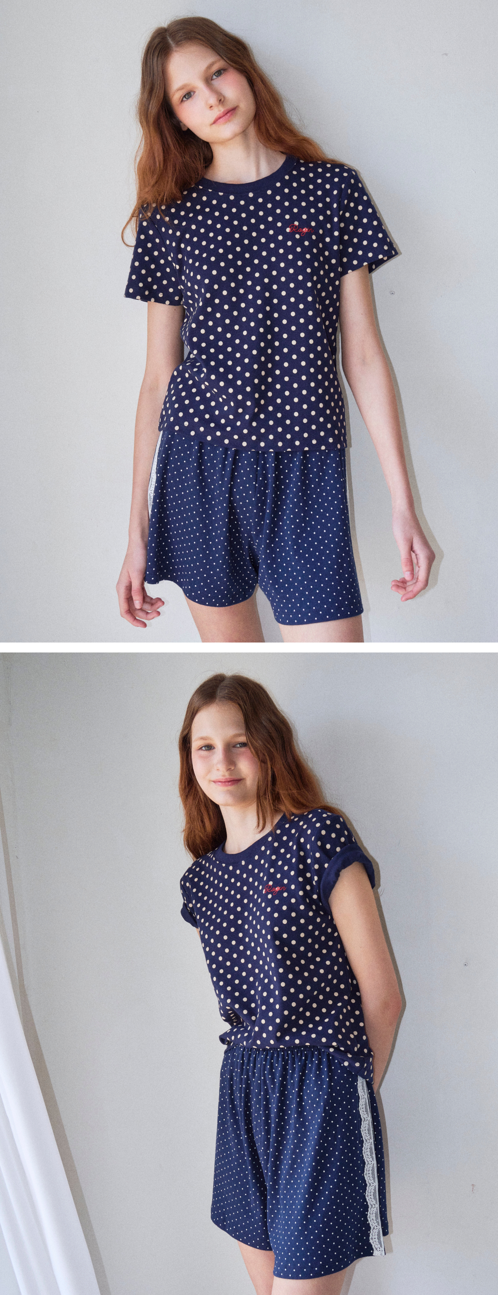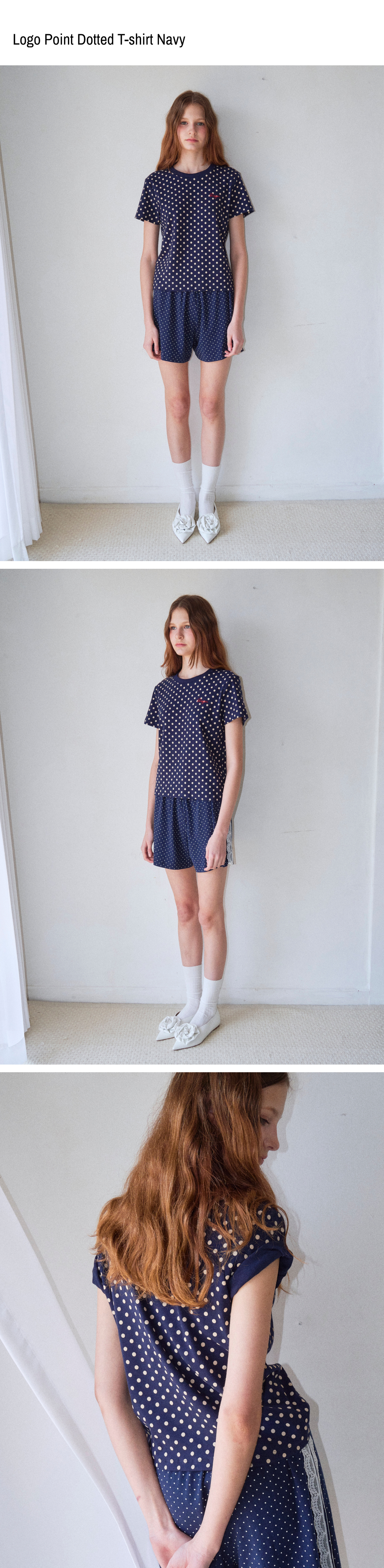 로긴 앤 로지 로고 포인트 도트 티셔츠 네이비