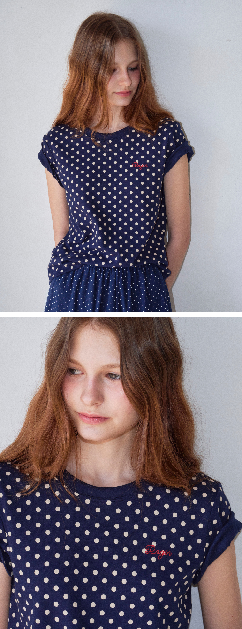 Rogin N Rosie Logo Point Dotted T-shirt Navy