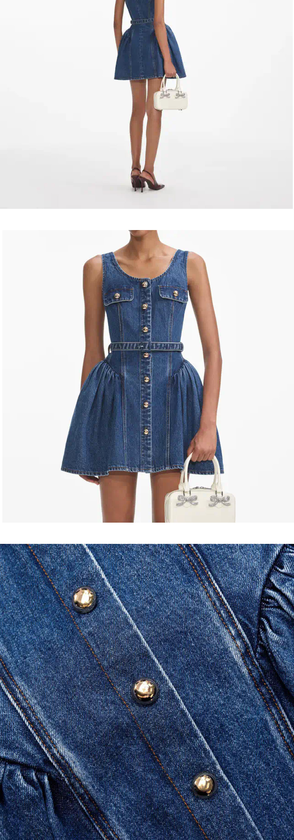 셀프 포트레이트 우먼 플레어 데님 미니 드레스 블루 - 25SS
