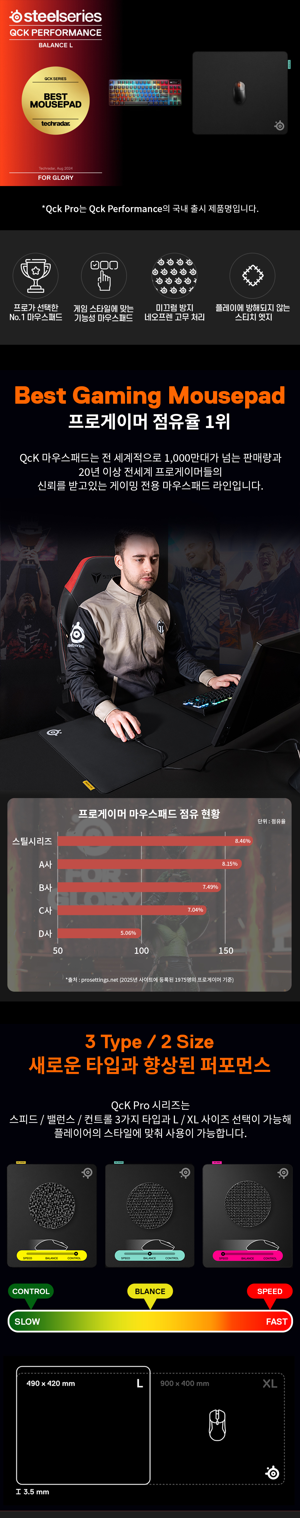 스틸시리즈 QcK Pro Balance 게이밍 마우스패드 라지 블랙
