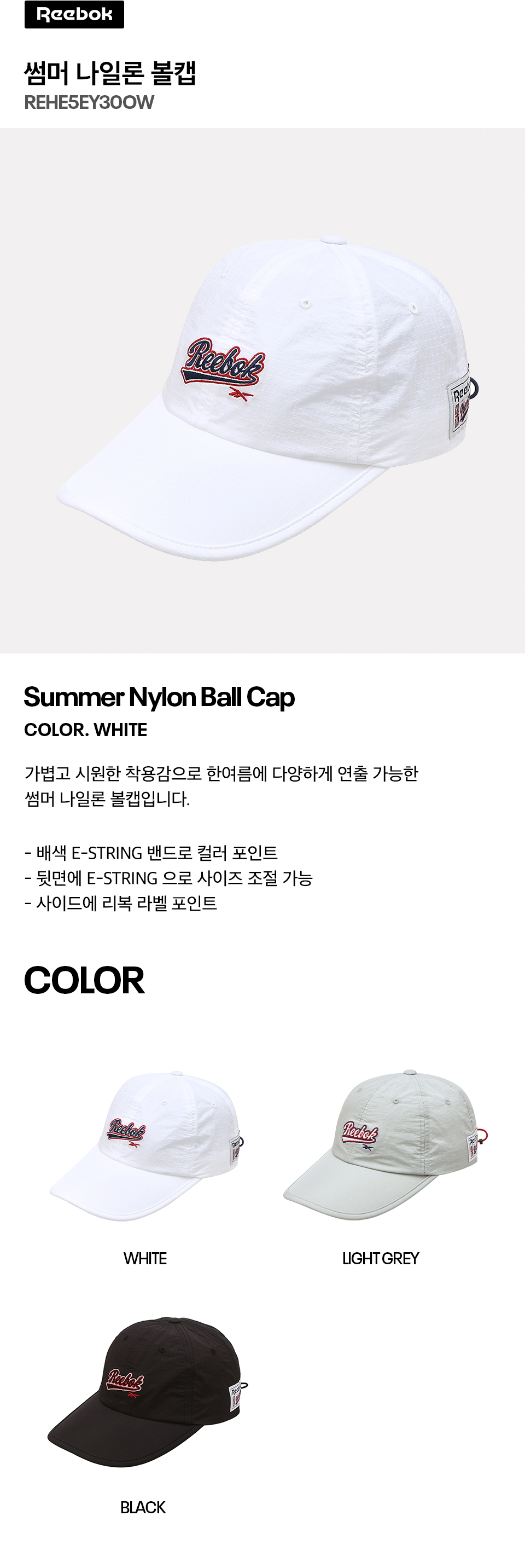리복 썸머 나일론 볼캡 화이트